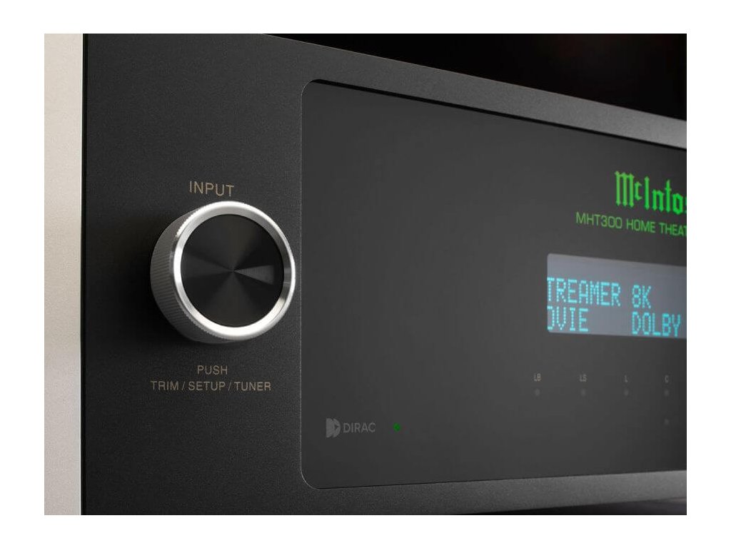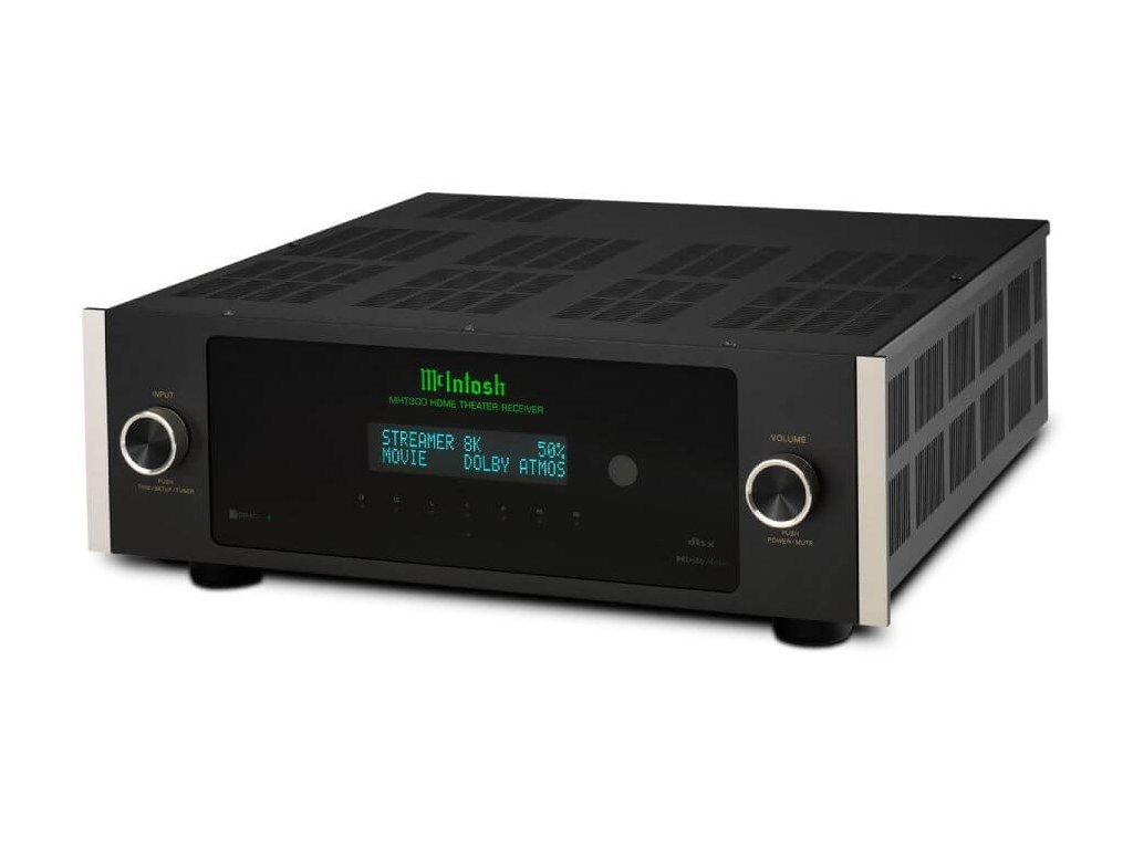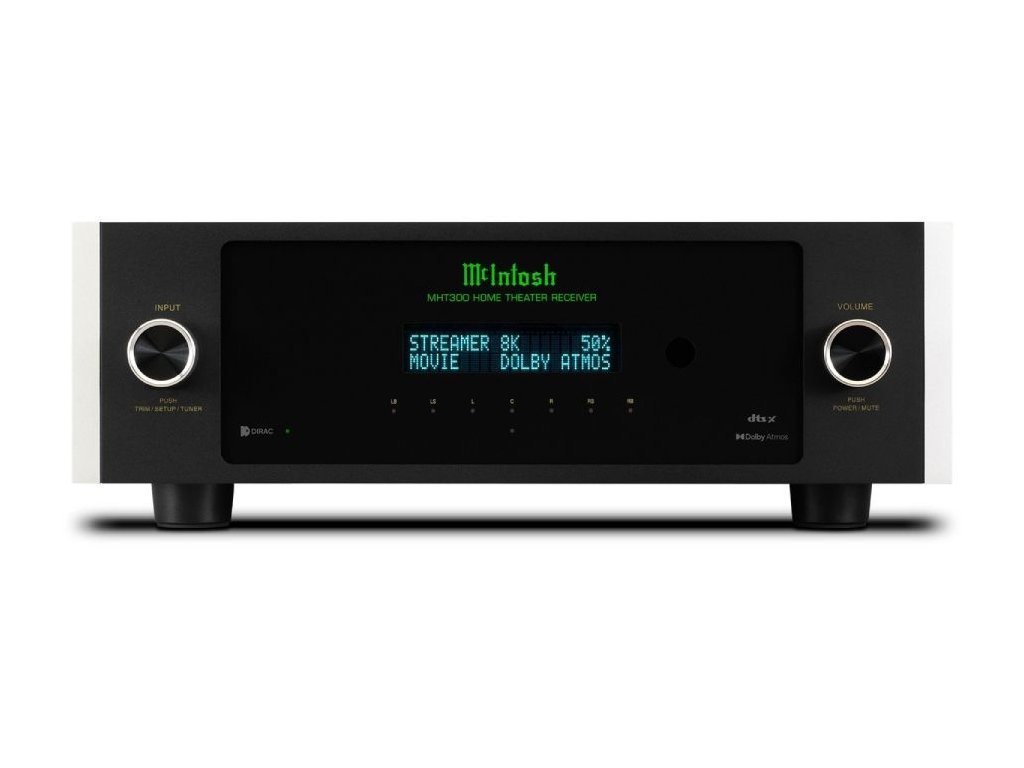 Přijímač domácího kina McIntosh MHT300 (nebo AV přijímač či AVR) je nekompromisní 7.2 (nebo 5.2.2) kanálové zařízení domácího kina, které jistě posílí váš emocionální vztah k tomu, co sledujete. Díky podpoře dechberoucího 8K/60Hz a 4K/120Hz videa a předních formátů prostorového zvuku pro domácí kino Dolby® Atmos a DTS:X™, a navíc díky dodávce 120-150 W legendárního výkonu McIntosh do reproduktorů domácího kina, vám MHT300 splní sny o domácím kině.