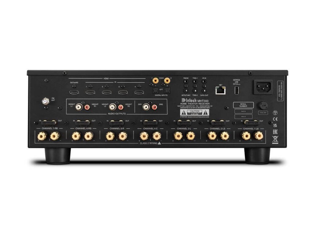 MHT300 se může rozrůstat i s vaším kinem, protože jeho jednotlivé moduly zesilovače lze konfigurovat mnoha způsoby tak, aby vyhovovaly vaší konkrétní konfiguraci reproduktorů. Pokud se jednoho dne vaše domácí kino rozšíří nad sedm kanálů, lze k MHT300 připojit další externí zesilovače, které je budou napájet prostřednictvím zvukových výstupů Height 1 a Height 2. K těmto výstupům by se připojil externí zesilovač, například čtyřkanálový zesilovač McIntosh MI254, který by tyto další reproduktory napájel. Tím by se z MHT300 stal 7.2.4kanálový AVR.