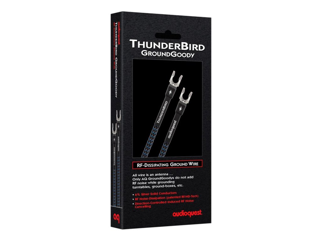 Zemnící vodič pro gramofony ThunderBird využívá prémiové materiály vodičů s technologií řízeného směru pro ještě lepší odvod šumu. Konektory jsou za studena pájeny k přímo postříbřeným vidličkám velikosti 10. Kromě toho technologie RF/ND rozptyluje a vyrušuje většinu indukovaného vysokofrekvenčního šumu.