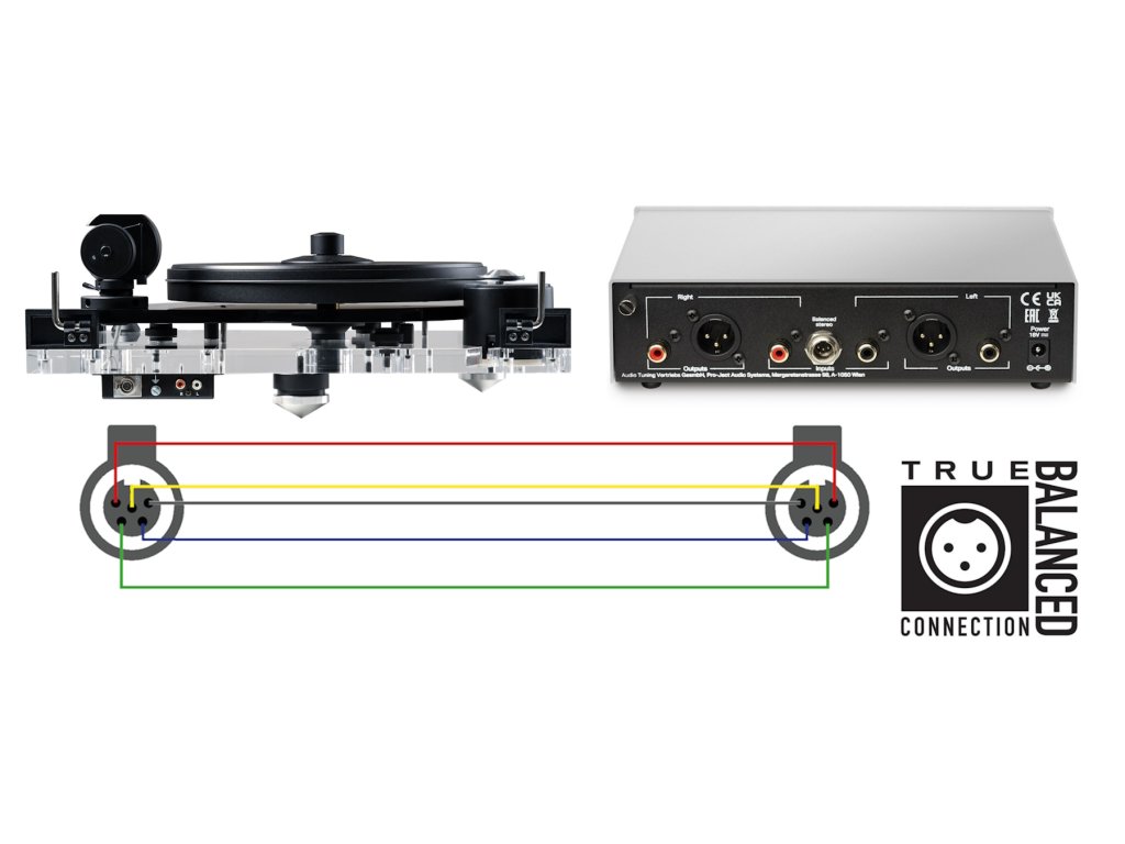 * Abyste mohli používat symetrické připojení True Balanced, váš gramofon Pro-Ject musí být vybaven přenoskou typu MC nebo speciální přenoskou MM Pick it PRO Balanced.