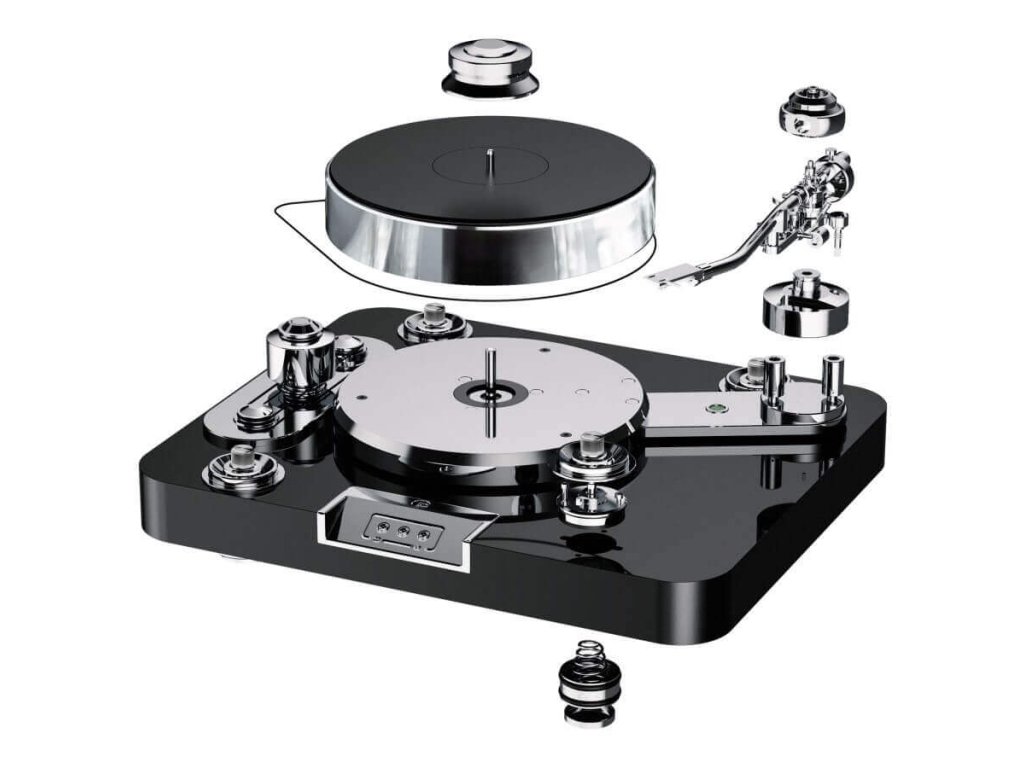 • Odpružené nožky s kuželovými hroty - nastavitelné z horní plochy šasi gramofonu