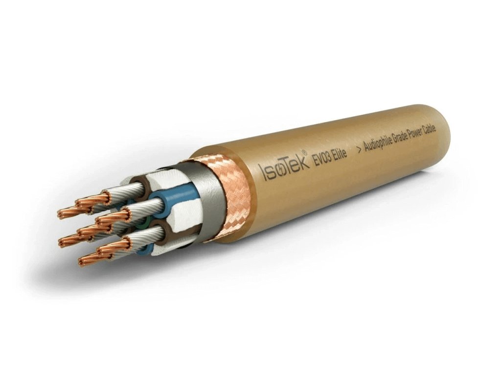 UKONČENÍ: Elite kabel je ukončen pomocí speciálních konektorů kvality Audiophile společnosti IsoTek z masivního OFC s 24karátovým pozlacenými vodiči. Ty nabízejí výkon nejvyšší kvality a jsou méně náchylné k zašpinění.