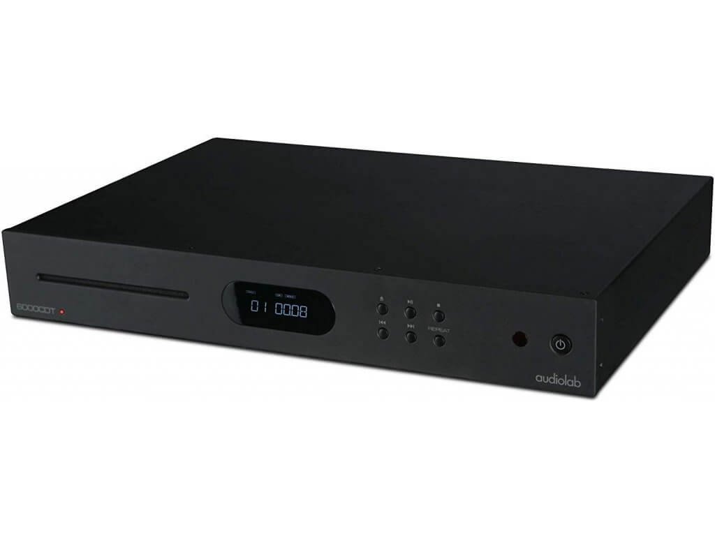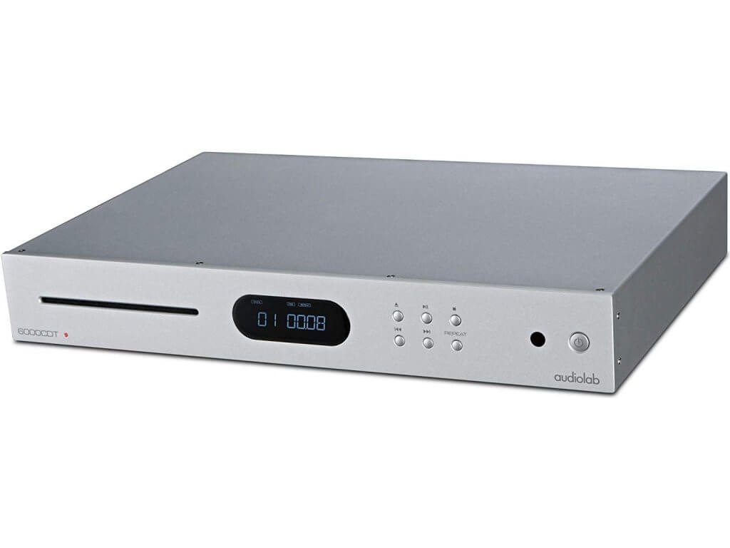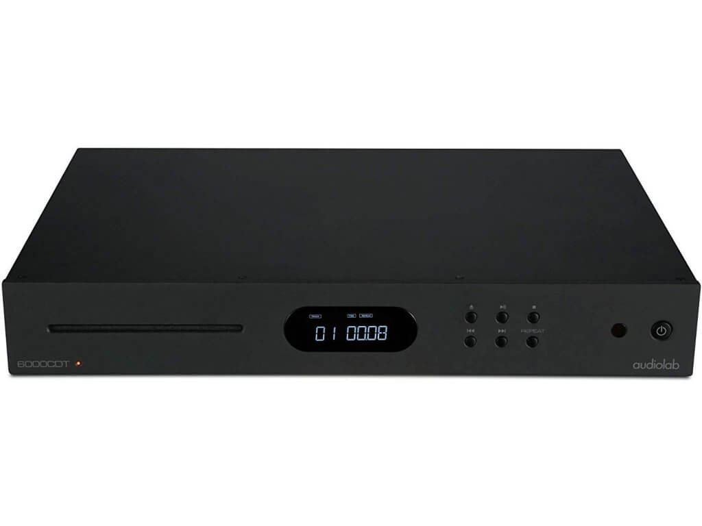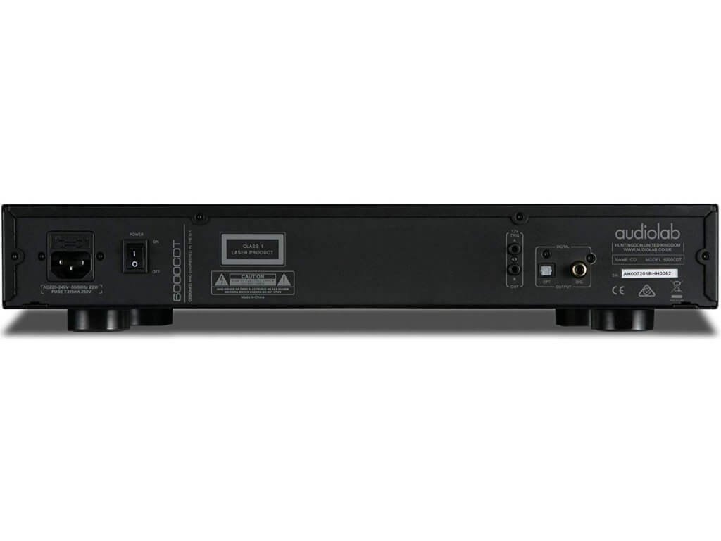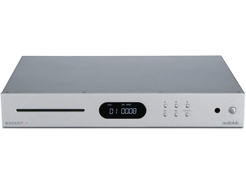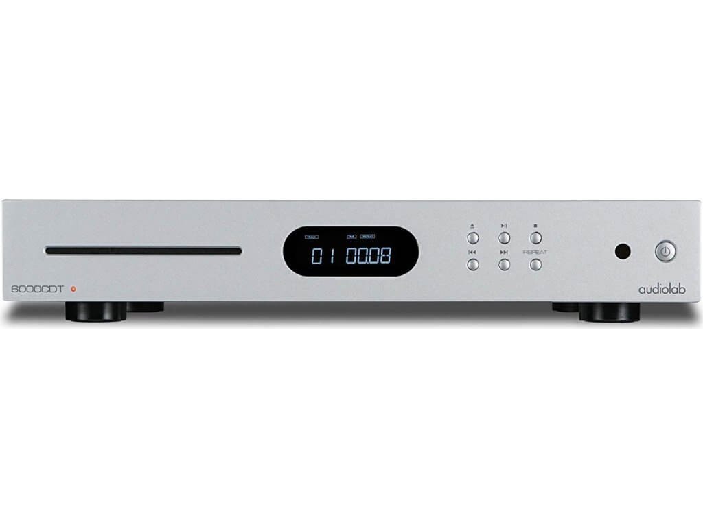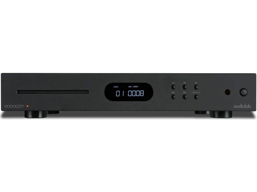 Audiolab 6000CDT je stejně velkém šasi, jaké má i zesilovač, se nachází 5,4 kg vážící CD transport. Podobně jako kolega má v centru čelního panelu integrovaný OLED displej, nalevo od něj je vhled do mechaniky a napravo šestice ovládacích tlačítek. Výrobce udává výstupní impedanci 75 Ohm (+/- 1 ohm), vzorkovací frekvenci 44,1 kHz a frekvenční odezvu 20 - 20 000 Hz (+/- 0,01 dB). Parametry tedy odrážejí v podstatě to, co by měl standardní přehrávač s podporou klasického kompaktního disku splňovat.