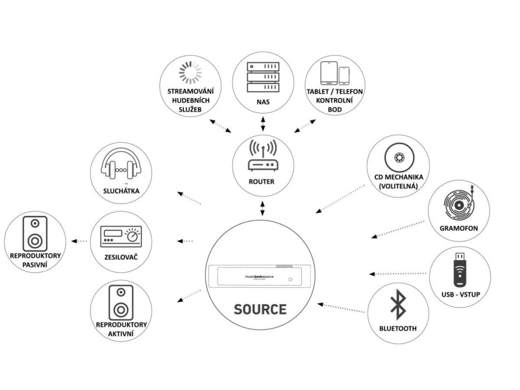 LINDEMANN MUSICBOOK SOURCE II CD využívá nový Wi-Fi modul podle standardu IEEE 802.11ac s technologií duální antény, takže nemusí být důvod pro připojení prostřednictvím kabelu do sítě. Integrace do bezdrátové sítě je jednoduchá a provede se „automaticky“ pomocí tlačítka pro připojení.