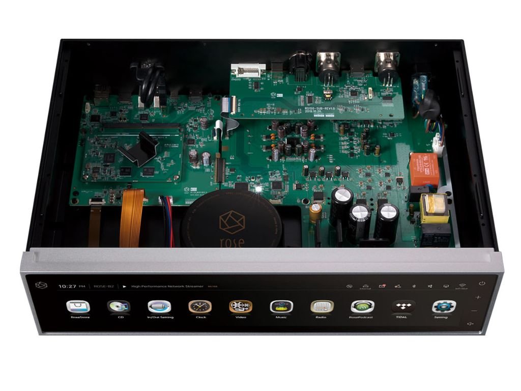 Svižný a vysoce inovativní operační systém ROSE OS vám umožňuje přístup k ROSE Tube, výběru videí YouTube ve vysokém rozlišení. Tyto videoklipy lze zobrazit na displeji hudebního přehrávače a ve vysoké kvalitě obrazu na další obrazovce 4K UHD. Vychutnejte si svou soukromou hudební a filmovou knihovnu ve vysoce kvalitním stereofonním zvuku. Přehrávejte internetové rozhlasové stanice a poslouchejte podcasty. Port USB umožňuje připojit jednotku CD-ROM, abyste mohli přehrávat a ripovat svou sbírku disků CD v nejlepší možné zvukové kvalitě.