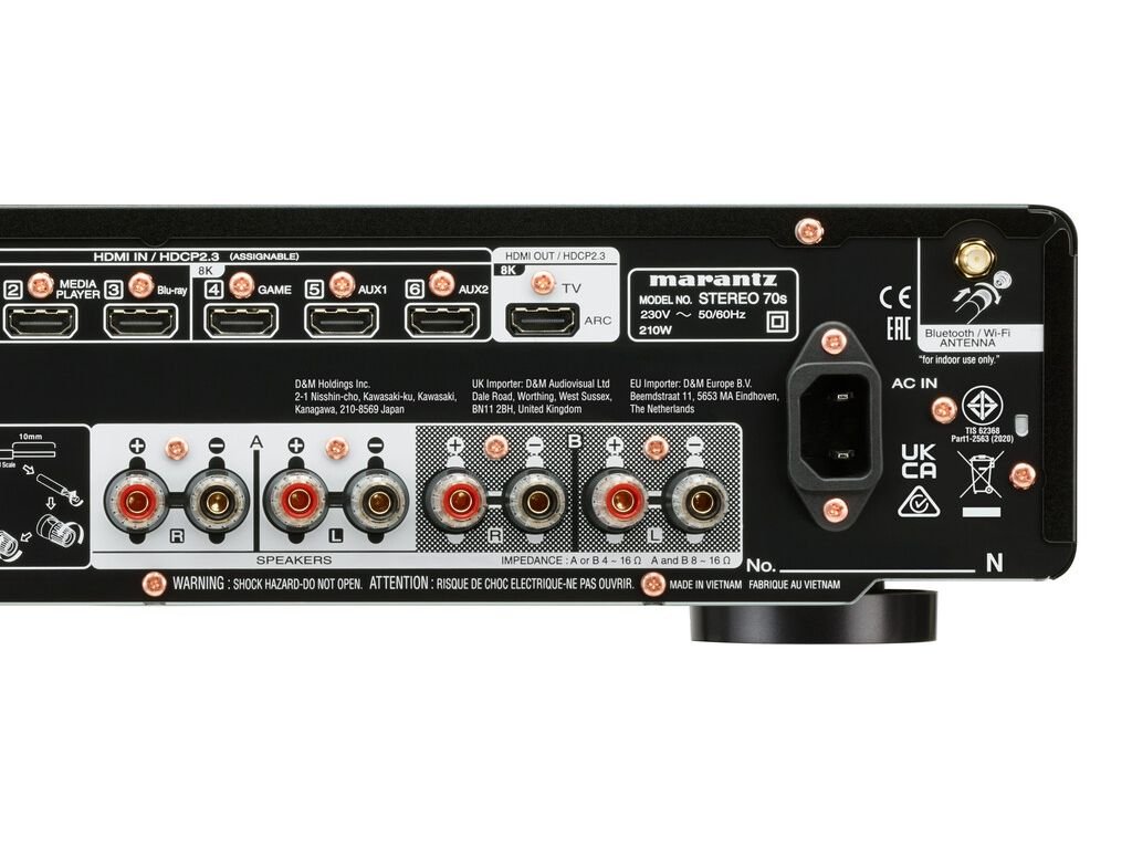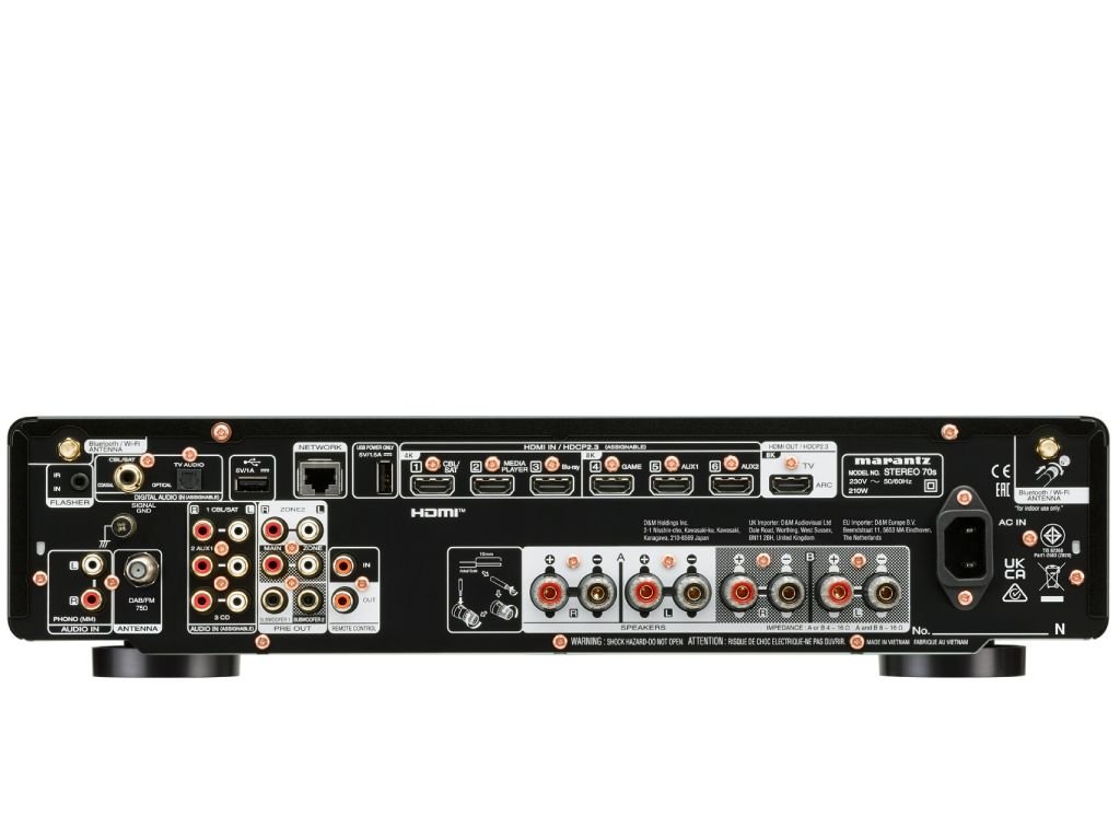 Marantz STEREO 70s je kompatibilní s různými video streamery, herními systémy a televizory díky šesti vstupům HDMI, z nichž tři jsou 8K.