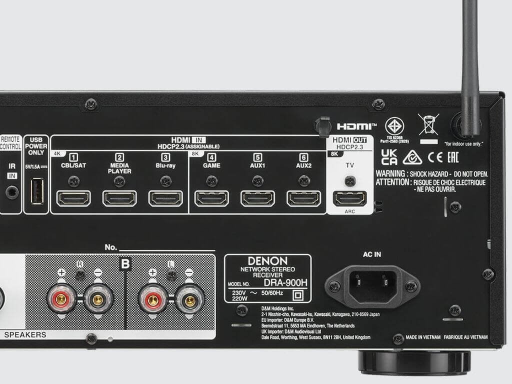 Podporuje nejnovější technologii HDMI na vstupech i výstupech. ARC (Audio Return Channel) nebo eARC (Enhanced Audio Return Channel) usnadňuje přehrávání televizního zvuku prostřednictvím přijímače, a to pouze pomocí jediného připojení HDMI.
