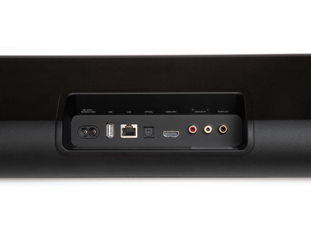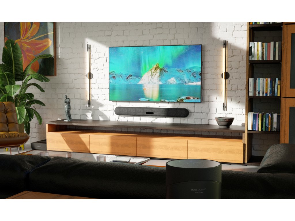 | Možnosti ovládání | dotykový panel na vrchní/přední části soundbaru, BluOS aplikace (iOS, Android, macOS, Windows), Amazon Alexa, Apple AirPlay 2 s podporou Siri, Spotify Connect, Tidal Connect, Roon Ready, Crestron, Control4, RTI, URC, Nice, Lutron, dálkový ovladač vaší TV (pouze v případě zapojení přes HDMI eARC), dálkový ovladač RC1 (volitelný) |