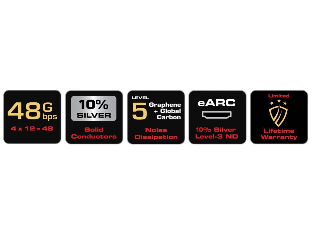 - Na povrchu datových vodičů a vodičů pro zpětný zvukový kanál eARC je 10 % vrstva z čistého stříbra