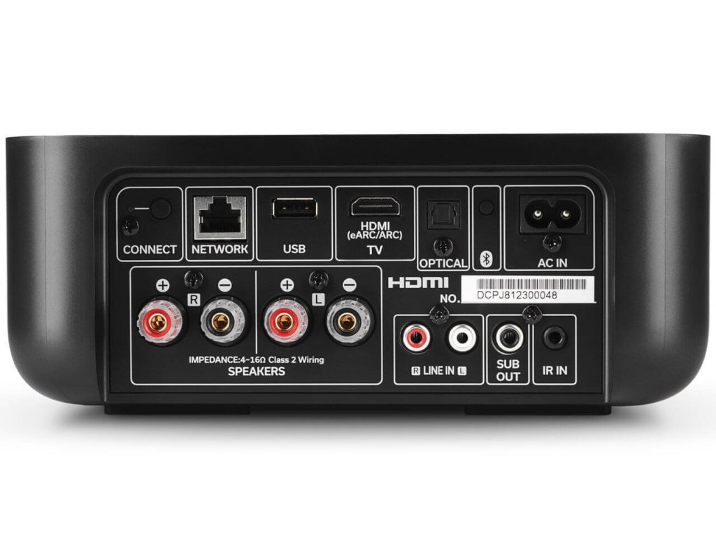 Je vybaven jedním vstupem HDMI ARC, který umožňuje propojení jediným kabelem s kompatibilním televizorem pro zvýšení kvality televizního zvuku a přímé ovládání hlasitosti z televizoru nebo dálkového ovladače zesilovače.