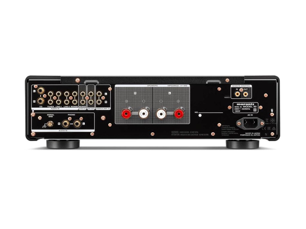 Díky vstupu pro řídící zesilovač můžete využít Marantz Model 30 jako samostatný výkonový stereo zesilovač, např. v kombinaci s řídícím AV system. U Marantz Modelu 30 můžete díky vestavěnému korekčnímu zesilovači použít gramofon s přenoskou MM i MC. Použitá konstrukce se snaží minimalizovat zkreslení, dvoustupňové zesílení kombinující HDAM obvody s JFET řešením na vstupu nabízí nízkou vstupní impedanci Díky tomu je možné konstrukci dále zjednodušit vynecháním kapacitorů a další redukcí zkreslení.Model30 je z důvodu optimalizace zvuku vybavený voličem vstupní impedance podle použité přenosky (MC x MM). Vstupní impedance může být: MC LOW (33 ohm), MC MID (100 ohm) a MC HIGH (390 ohm).