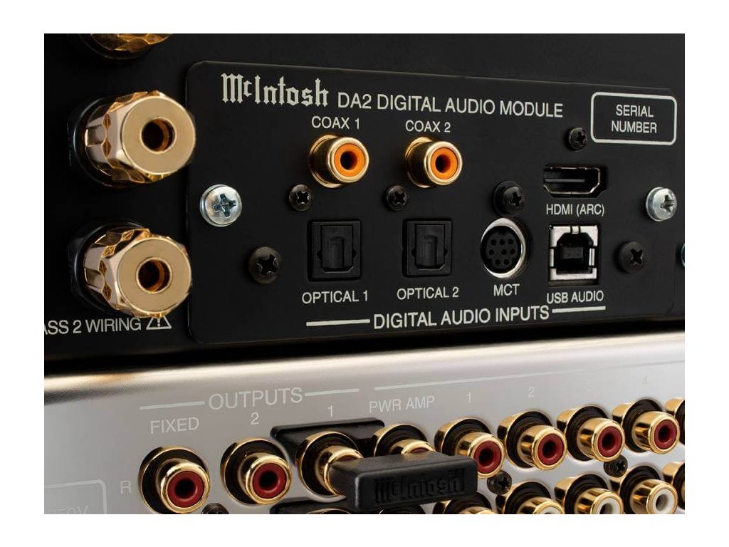 DA2 je napájen audiofilním, symetrickým, osmikanálovým, 32bitovým digitálně-analogovým převodníkem (DAC), který má ve srovnání s DAC v DA1 lepší dynamický rozsah i celkové harmonické zkreslení. Koaxiální a optické vstupy v DA2 dokáží dekódovat digitální hudbu až do 24 bitů/192 kHz pro přehrávání zvuku ve vysokém rozlišení. DA2 má exkluzivní vstup MCT společnosti McIntosh, který nabízí bezpečné připojení DSD k jakémukoli z naší řady MCT SACD/CD transportérů pro zajištění nejlepší možné kvality zvuku s vysokým rozlišením, který se nachází na vašich SACD discích. A díky modulární konstrukci je možné DA2 jednoho dne nahradit novějším digitálním zvukovým modulem.