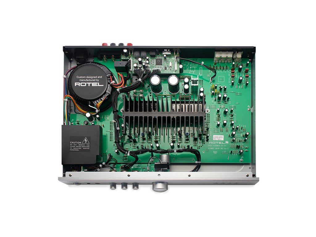 Model A10MKII, konstruovaný s lineárním napájecím zdrojem s masivním toroidním výkonovým transformátorem Rotel, poskytuje osvědčených 50 wattů na kanál ve třídě A/B do 8 ohmů a ještě více do náročnějších reproduktorů.