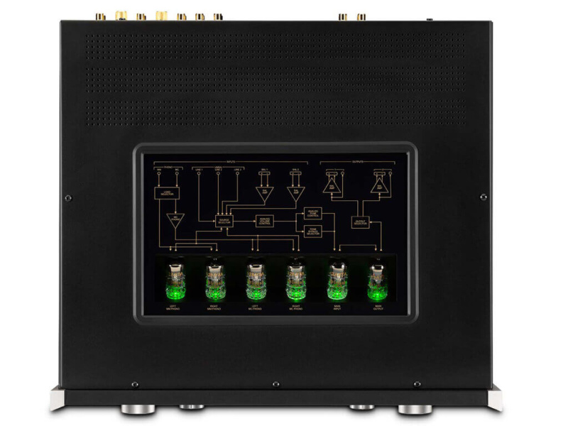• elektronky viditelné přes prosklení v horním panelu