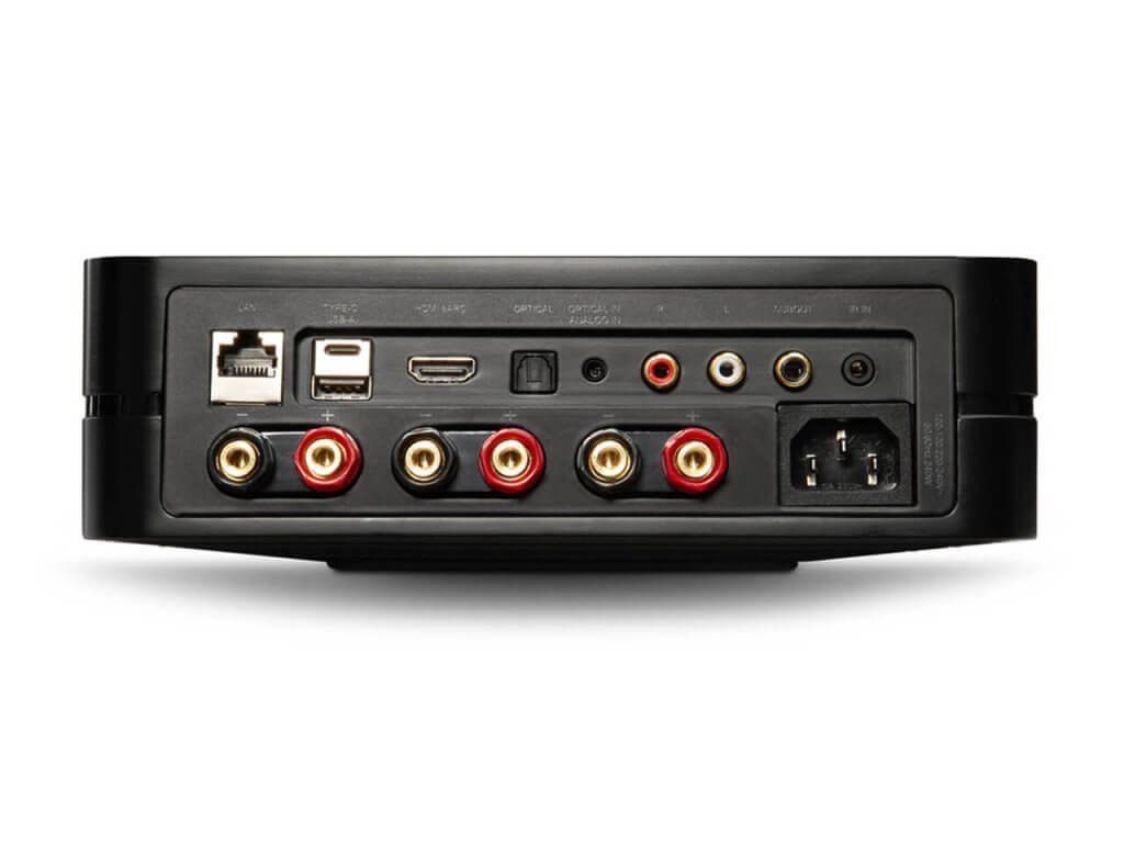 | Vstupy | 1 x stereo linkový RCA, 1 x analogový linkový 3.5 mm jack (kombinovaný), 1 x digitální optický mini TOSLINK (kombinovaný), 1 x digitální optický TOSLINK, 1 x HDMI eARC, 1 x USB-C, 1 x USB-A, 1 x Gigabit Ethernet RJ45, 1 x IR 3.5 mm jack |